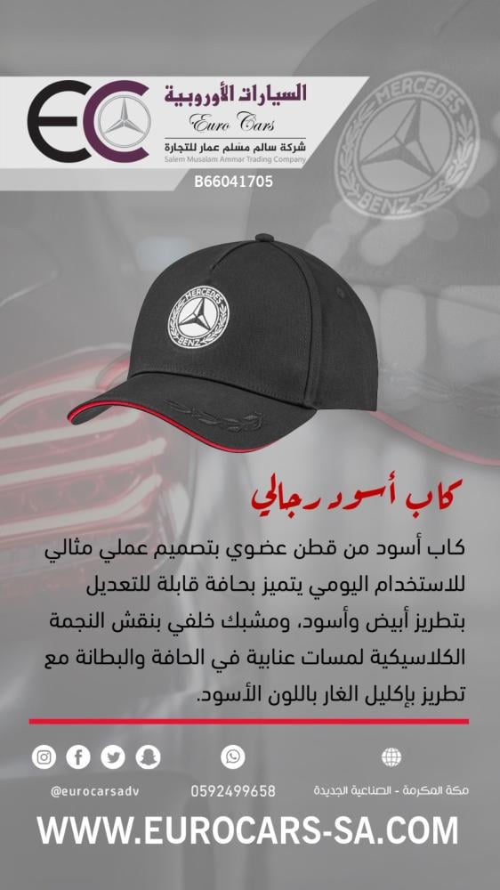 كاب أسود بحافة حمراء مع نجمة مرسيدس الكلاسيكية